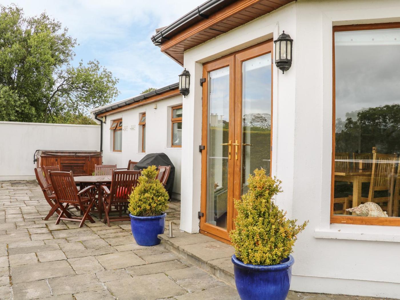 Holiday Home. The hot tub is a top feature of this holiday home. This spacious holiday home comes with 3 bedrooms, a seating area with a sofa and 1 bathroom with a shower. The well-fitted kitchen has a stovetop, a refrigerator, a dishwasher and an oven. The holiday home features a TV, a washing machine, a dining area, a wardrobe as well as sea views. The unit has 3 beds.