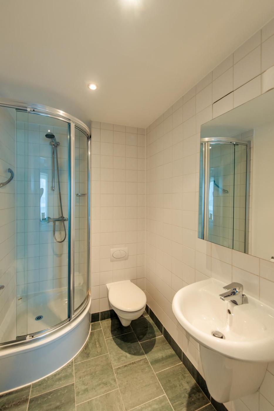 Two-Bedroom Apartment. The apartment has 2 bedrooms with en suite bathrooms, a main bathroom, a large living room and a fully equipped kitchen. In addition to the facilities listed below, the kitchen has a cooker, oven, a washing machinedryer, a fridge freezer, a toaster, a kettle, cutlery and crockery. Other facilities in the apartment include: under-floor heating in the bathrooms, linen, towels and toiletries and wardrobes with hangers. The apartment has 1 Ensuite Bedroom and 1 main bathroom (1 bedroom is not ensuite) ;